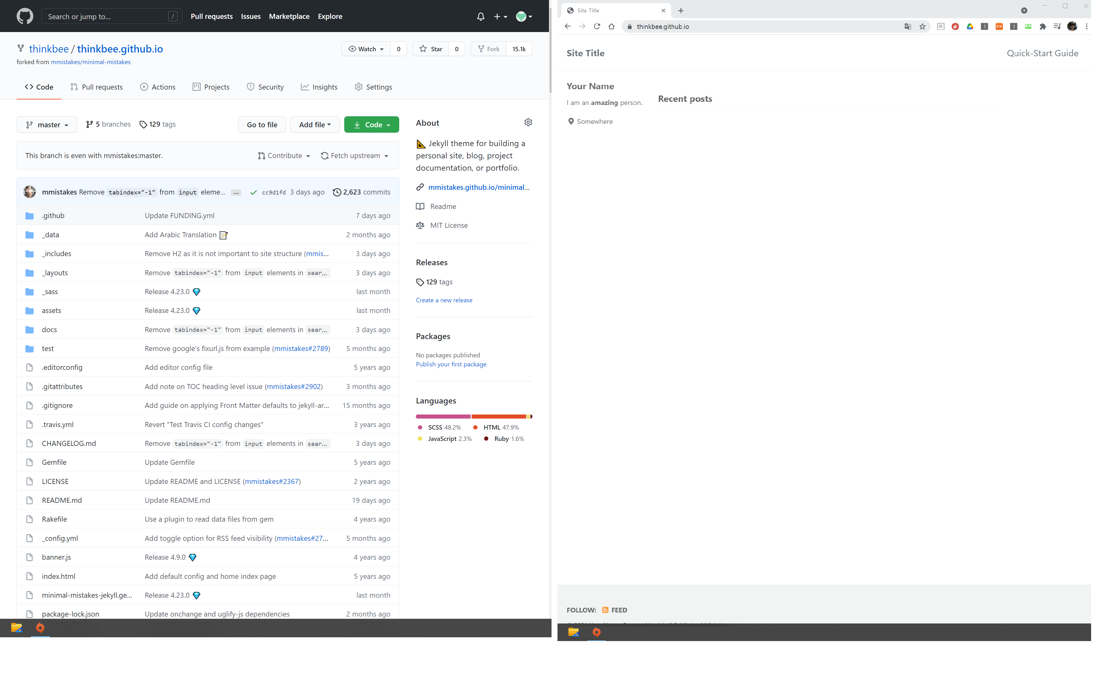 git-pages: Jekyll 테마 Minimal-mistake Remote Theme 사용(1) 본문